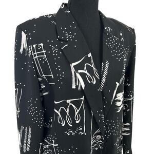 • Features: Black, White, Abstract Print, Lightweight, Blazer, Shoulder Pads