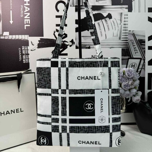 GWP CHANEL MONOCHROME CHECKERED PRINT TOTE BAG