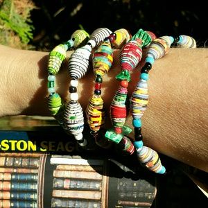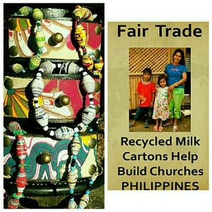 Reclaiming discarded cartons from one of the poorest islands in the Philippines, minister's wives wash & roll the paper to create these eco-friendly bracelets. While helping the environment, proceeds from this up-cycled jewelry also help to build churches.