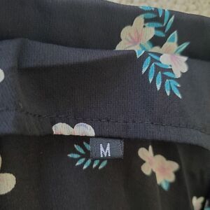 Black color with white, pink, blue floral design.