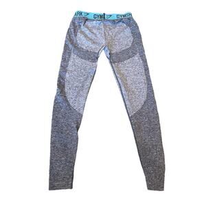 GYM SHARK Grey Blue Waistband Flex Low Rise Leggings XS