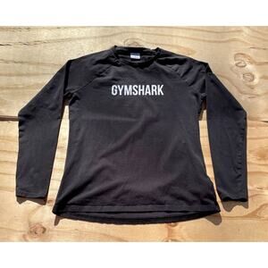 Gym Shark Black Men's Long Sleeve Crew Neck Logo Tee Size Medium GML T4228
