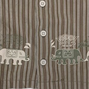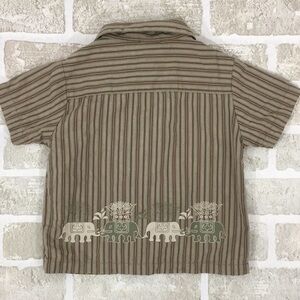 GYMBOREE Boys 6-12 Months Tan Striped Button Down Shirt with Elephants