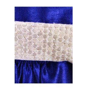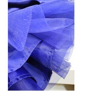Gymboree girls' semi-formal dress in a beautiful blue color, featuring a golden bow detail at the waist, cap sleeves, and a button closure in the back. Fit and flare style, layered with tulle and satin-like material. Perfect for the holidays, family pictures, or formal events.