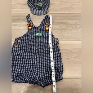 GYMBOREE Rainbow Tag VINTAGE SPORTS Blue Gingham Football Shortalls XSMALL Cap
