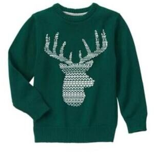 GYMBOREE Reindeer Knit Sweater Size 5-6 Green Winter Holiday Christmas Deer Crew