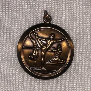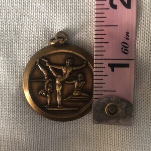 GYMNASTICS PENDANT NECKLACE MEDAL BRONZE TONE VINTAGE. Use as necklace, for key chain, medal, charm, etc. Approx 1.25 inch, see pics. Please ask any questions you may have before purchasing. B-3, item 7.