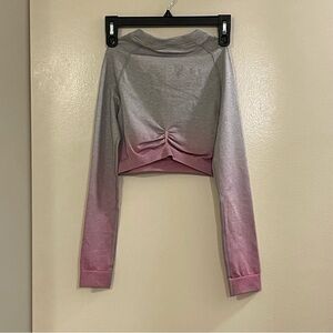 GYMSHARK Adapt Ombre Seamless Long Sleeve Crop Top in Light Gray Marl Shell Pink
