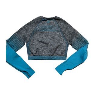 GYMSHARK Amplify Seamless Long Sleeve Cropped Shirt Blue Gray Size Large