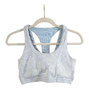 GYMSHARK Blue Fleur Texture Moisture-wicking Overlapping Sports Bra Medium