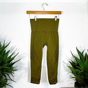 GYMSHARK • Dark Green Energy Seamless Cropped Green Mesh Panel Athletic Workout Gym Leggings