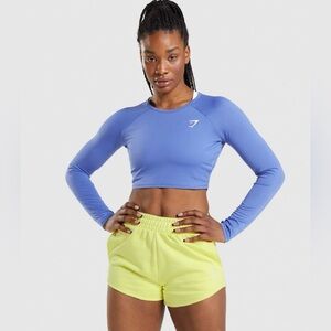 GYMSHARK Training Women Sport Top M Cropped Blue Crewneck Stretch Workout