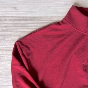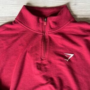 Gymshark zip pullover sweatshirt. Lightweight. Maroon red. White Gymshark heat seal logo on front, left chest. 1/4 zipper. Elastic waistband hem. Cropped. Front kangaroo pocket. Ribbed sleeves. Womens size small.