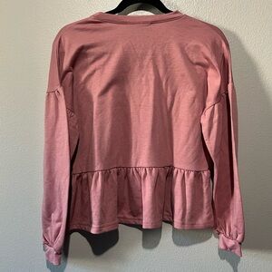 GYPSIES AND MOONDUST- Mauve Pink Long Sleeve Peplum Top Size S. Cute and feminine top for everyday. Excellent condition.