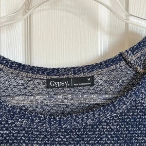 Gypsy 05 long sleeve sweater dress. Midi length, lightweight knit, crew neck style, raglan sleeves. Approximate measurements: length 35”, across chest armpit to armpit 19”.