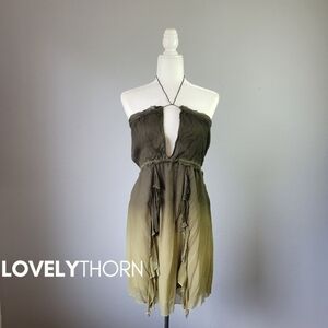 GYPSY 05 // ltd ed flowy viscose olive ombre plunge 2 way peek-a-boo back dress