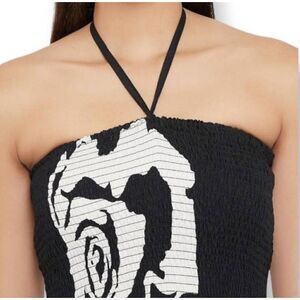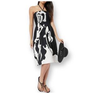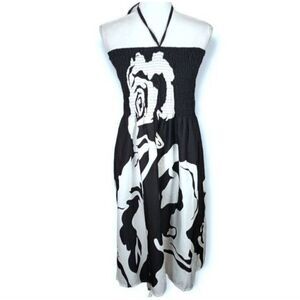 GYPSY BLU BLACK & WHITE WOMEN DRAWSTRING ELASTIC SHORT TUBE DRESS SZ.M EUC. GORGEOUS DRESS IN EXCELLENT USED CONDITION.