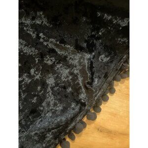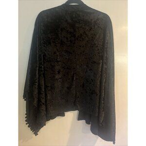 Beautiful black burned out, crushed velvet, kimono, pom-pom fringe on the sleeve hem. Embroidered front with bird leaves and flower on both sides.