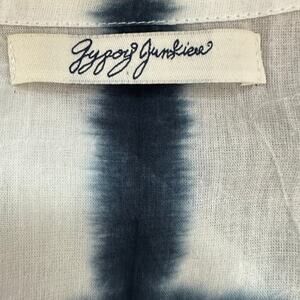 GYPSY JUNKIES Cotton Kimono Duster Blue White Tie Dye Fringe Trim Boho Festival