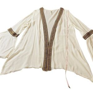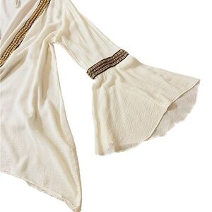 GYPSY JUNKIES WOMENS CREME COLOR OPEN KIMONO WITH EMBROIDERY SIZE M/L