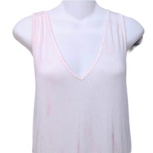 Pretty white and pink watercolor print. V-Neck. Twist back detail. Slits at both sides.