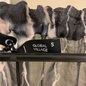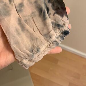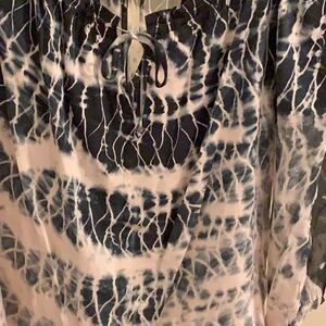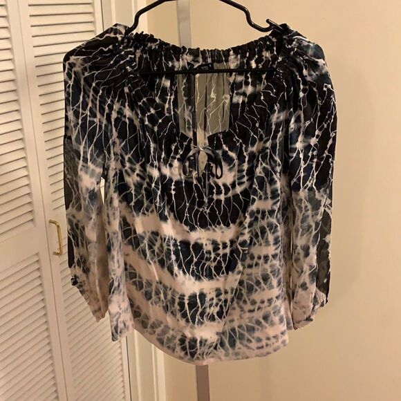 Gypsy 05 Blouse Mixed hues, blue, cream Cute tie front closure, ultra feminine