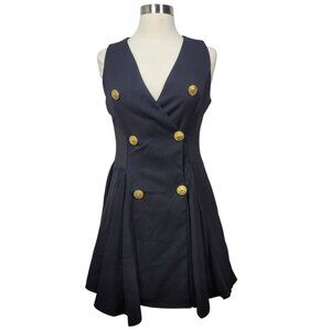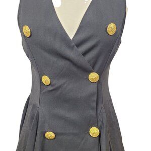 GZM Black Sleeveless Double Breasted Military Cocktail Party Dress Size Medium