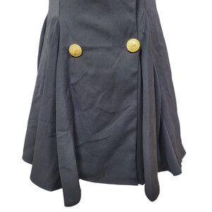 Elevate your wardrobe with this GZM Black Sleeveless Double-Breasted Dress in size Medium. This striking piece combines the elegance of a classic little black dress (LBD) with bold, military-inspired gold-tone embossed buttons for a statement look.