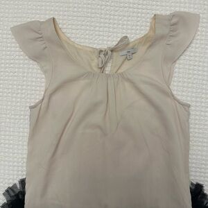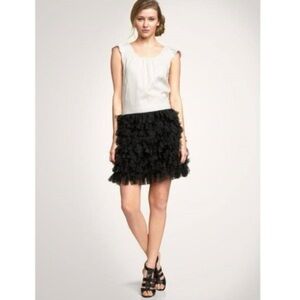 This chic black mini dress from GAP features a playful bubble style with elegant ruffled layers, perfect for a night out or cocktail event. The rich black color and cascading ruffles create a sophisticated yet fun look, making it a standout piece in any wardrobe.