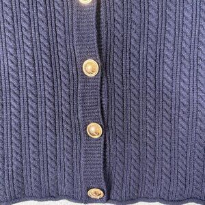 Gab Kate Womens Navy Cropped Cable Knit Cardigan Sweater Small Gold Buttons