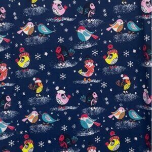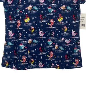 Gabby Brooke Christmas Scrub Top Womens Small Blue New Bird Print