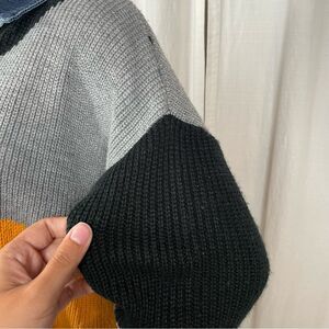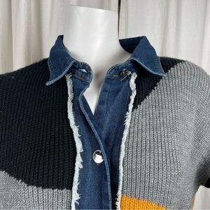 Gabby Isabella Knit Colorblock Denim Fringe Sweater Jacket Women’s Size Small