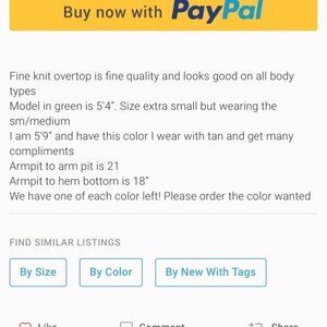 Fine knit overtop is fine quality and looks good on all body Armpit to arm pit is 21”