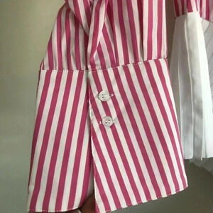 Gabby Isabella Pink/White Stripe Asymmetrical Pleated hem line/cuff,long sleeve