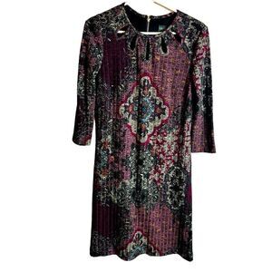 EUC lined Gabby skye dress. Size 4 boho vintage style print. Peep hole accents at neckline. Zipper on back. Smoke free dog friendly home. Measurements are approximately 16” bust 14” waist and 35” length. bb13