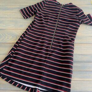 Gabby Skye Asymmetrical Shift Striped Round Neck Dress Multicolor Size 8 (E8)
