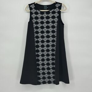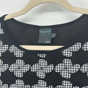 The Gabby Skye Black Mesh Gingham Floral Poly/Spandex Shift Dress in size 10 is a stylish and versatile piece perfect for casual occasions. This knee-length dress features a round neckline and sleeveless design with a mesh overlay floral pattern, giving it a unique and feminine look. Made from a comfortable polyester blend fabric with a touch of spandex for added stretch, this dress also includes convenient pockets. Suitable for summer, fall, or spring, this lightweight dress in black and white gingham color is a must-have for any woman's wardrobe.