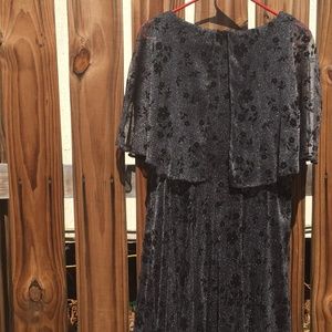 Gabby Skye Sleeveless Black Metallic Silver Shiny Party Dress with Velvet Flowers