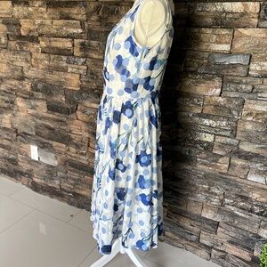 Gabby Skye Blue and White Sleeveless Midi Dress