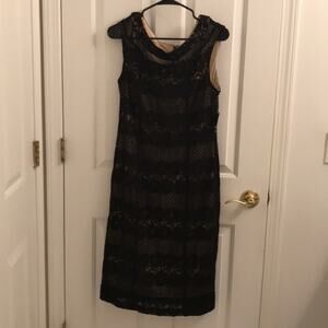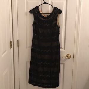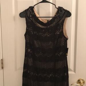 Bought from lord and Taylor for wear during pandemic. Lace black and nude dress. cap sleeve. sleeveless.