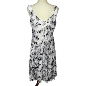 Gabby Skye Dress Women 12 White Black Print Floral Bird Lace Overlay Sleeveless. Lined. Very Good Pre-owned condition. No found flaws or stains. See photos for measurements. Ships quickly from smoke-free home.