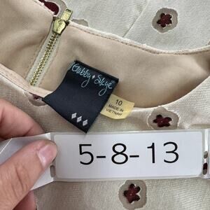 Gabby Skye Dress Womens 10 Ivory Burgundy Floral Embroidered Sheath 3/4 Sleeve