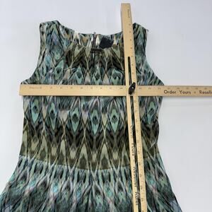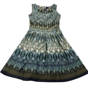 Gabby Skye Dress Womens 4 Green Blue Sleeveless Fit Flare Ikat Pattern Midi
