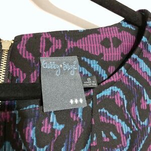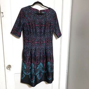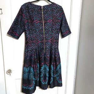 Gabby Skye Fit Flare Purple Teal Black Dress Sz 8