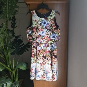 Gabby Skye beautiful garden floral watercolor print. Two piece dress, shown with and without shrug like top. Size 6, I believe this is new without tags. seeing no flaws.