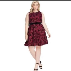 Gabby Skye Sz 18W Red Black Velvet Burnout roses fit flare prom Dress Whimsigoth