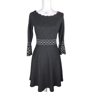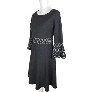 Gabby Skye ~Woman Size M~ Gray Fit & Flare Dress 3/4 Bell Sleeve.