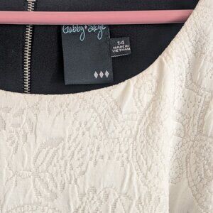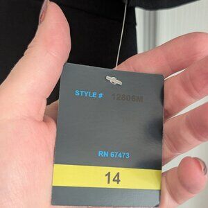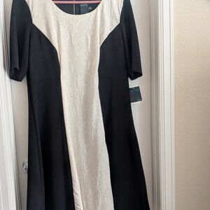 This is a Gabby Skye Women's Dress size 14 new with tags. It's the perfect dress for work, cocktail party or a special night out. It's a short sleeve dress that falls right around the knee. The black on the sides is flattering for all figures:)