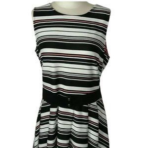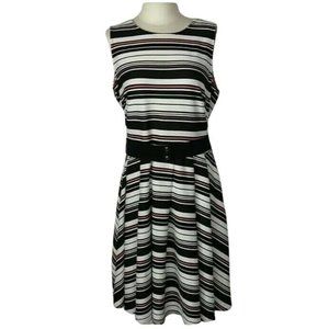 Gabby Skye Women's Striped Sleeveless Spring Dress Belted Back Zip