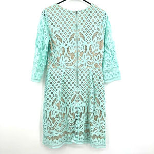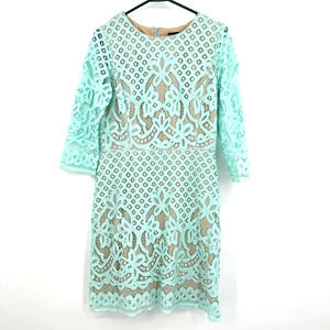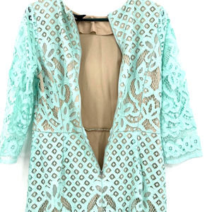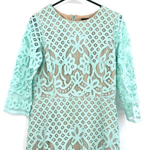 Gabby Skye size 10 blue lace mini dress lined elbow length sleeves rear zip